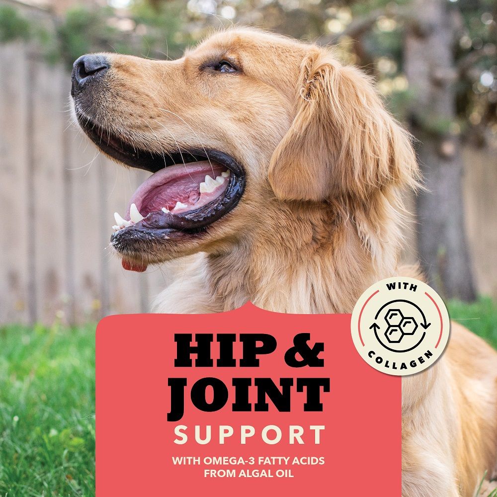 - Helps support hip & joint function with Omega-3 fatty acids from algal oil.