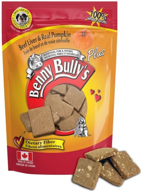 Pet owners and in particular dog trainers, have discovered Benny Bullys Dog Treats as a nutritious, pure and natural alternative to traditional dog treats. We added real pumpkin to the beef liver in our original Benny Bullys Liver Chops, making Benny Bullys Plus a blend of nutritious and delicious pure natural ingredients.