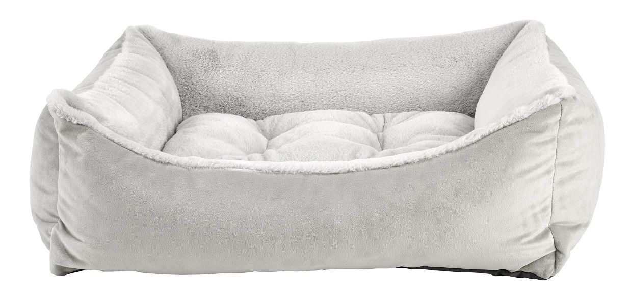 This innovative design features a "scooped" front which creates a modern sleek look while creating easy access for smaller or older arthritic dogs. Elegant two-tone fabric combination and European style "scalloped" trim. Removable tufted center cushion and zippered outer cover. Generous sizing maximizes sleeping area making it perfect for larger dogs.