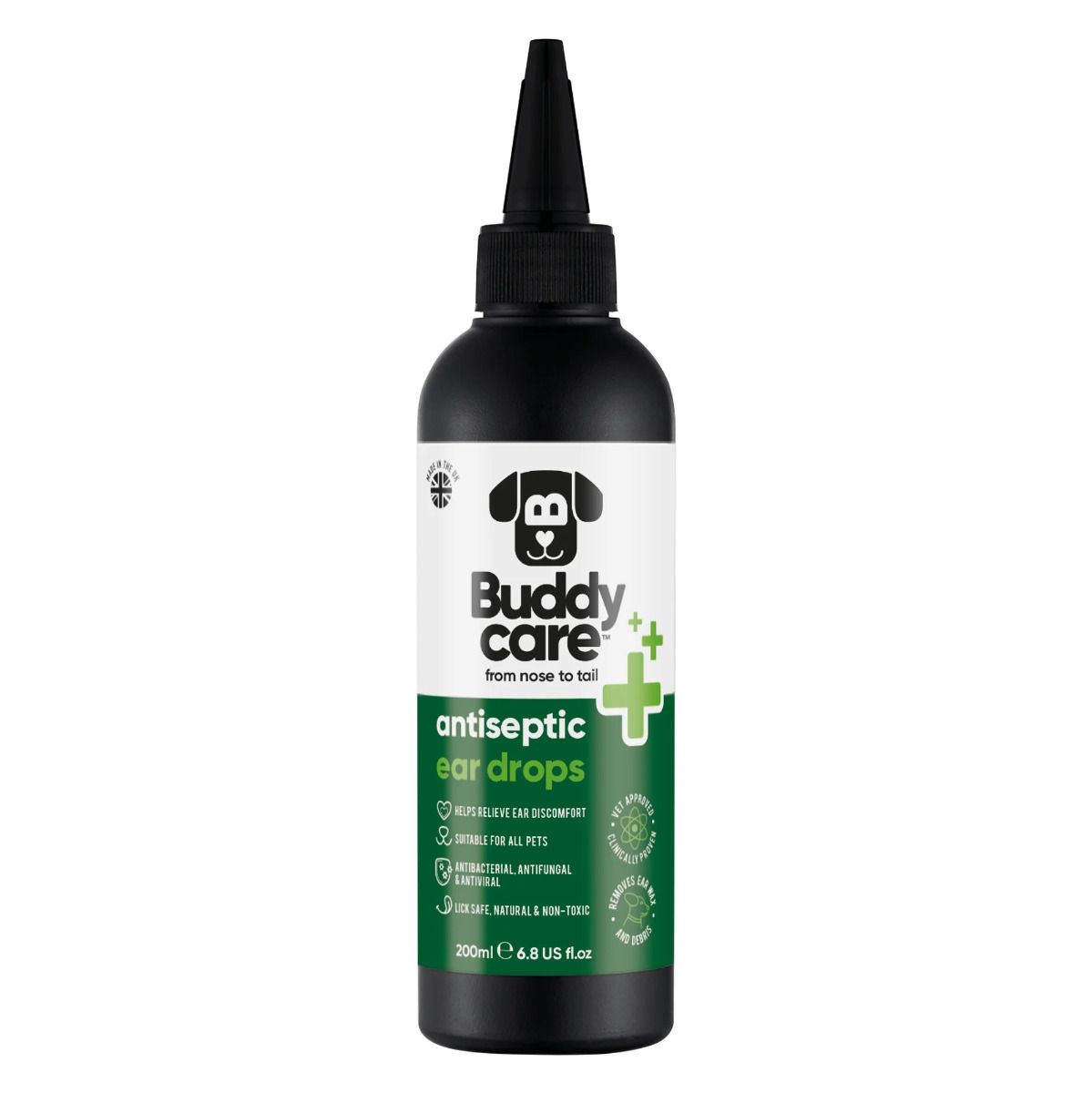 Buddycare Antiseptic Ear Drops for Dogs are specially formulated to provide fast, effective relief from ear infections, itching, and inflammation. Our veterinarian-approved solution is designed to cleanse, disinfect, and soothe your furry friend’s ears, ensuring they stay happy and healthy.