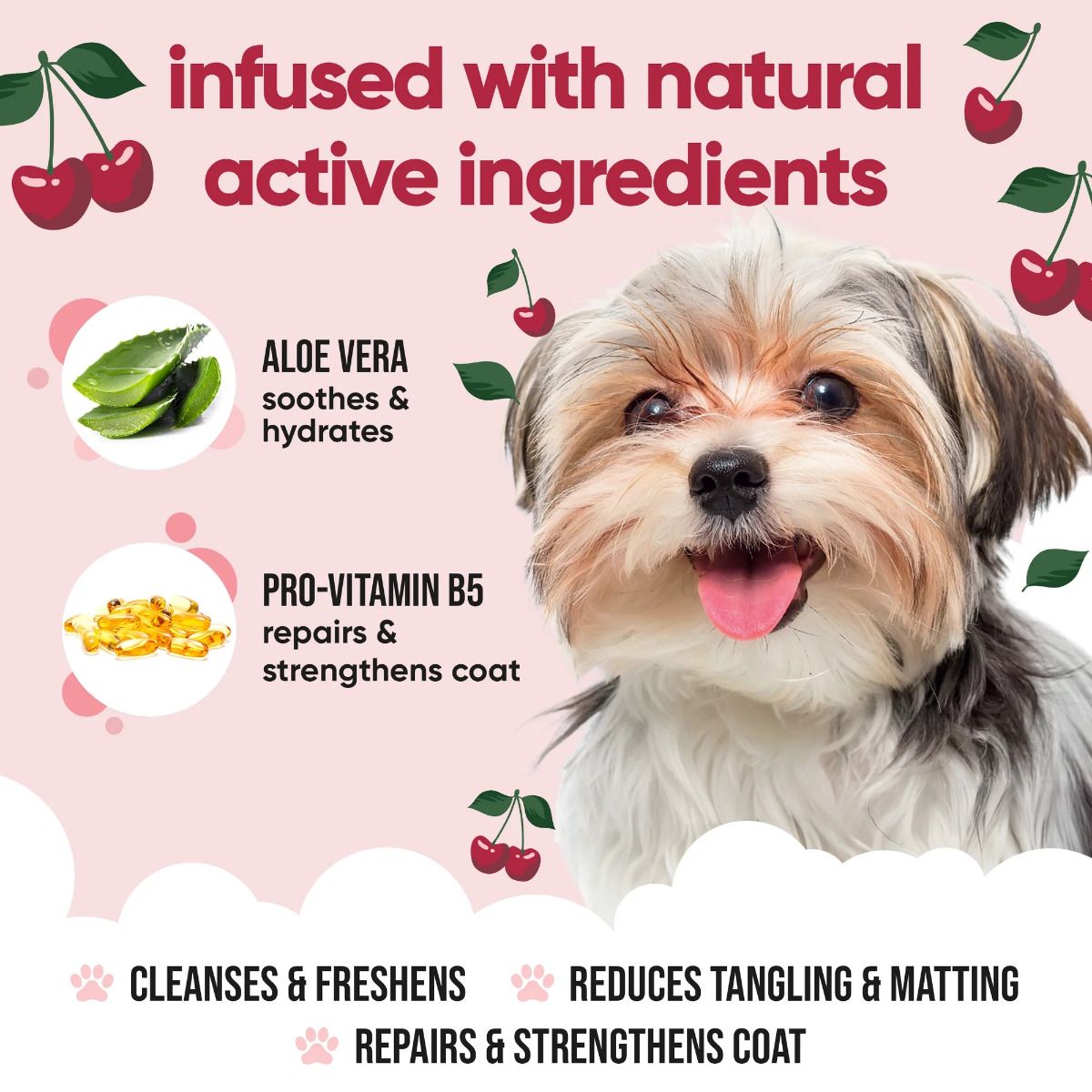 Buddycare's Black Cherry Dog Shampoo is a gentle shampoo that's specially formulated to remove dirt and grime while leaving your pup's coat soft, shiny, and irresistibly huggable. Indulge your furry friend with the captivating scent of black cherries while providing them with a deep and thorough clean. You'll enjoy a fresh and clean companion with a distinct and intensely rich, fruity fragrance.
