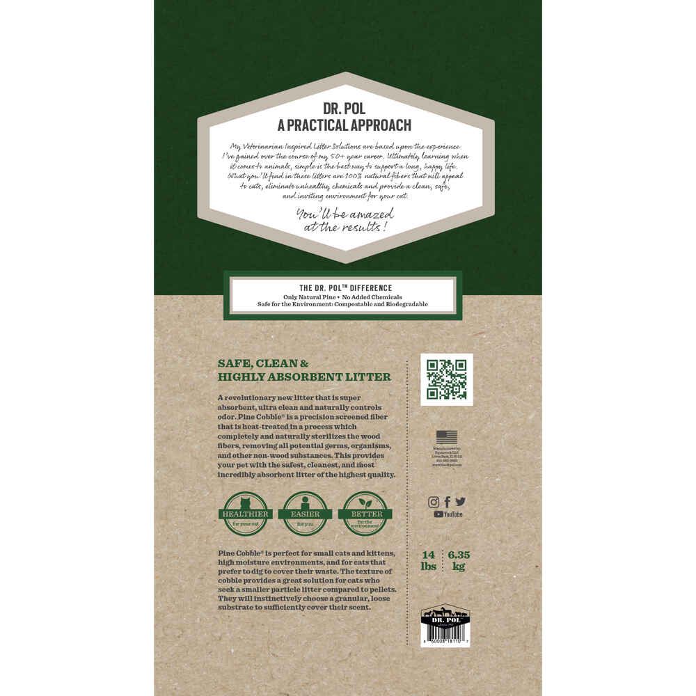 “I’ve been a veterinarian for over 50 years and yes, litter matters. That’s why I am very excited to introduce my premium line of all-natural pine cat litters. They’re high quality, safe and healthy options for you and your pet, and they’re down to earth products, just what I like! The Pine Cobble litter in particular is an innovative product with a warm, comforting texture that appeals to cats.”
