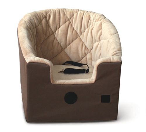 The K&H Bucket Booster has a durable 600-denier fabric exterior, and plush quilted fleece interior for your pets comfort. Designed to fit in either the front or back seat of your vehicle, the contoured back ensures a snug fit inside of your vehicle. The Bucket Booster securely buckles in and your seat belt is hidden under the removable cushion. It is extremely easy and quick to install and uninstall. The front dips down so you pet can easily get in and out, and has a firm foam bolster around the edge with 3” cushion at the bottom.