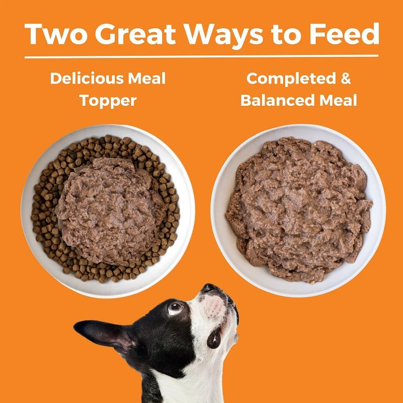 Amount of food your dog requires will depend on activity, age, environment and breed. Feed at room temperature and refrigerate unused portion. Always provide access to clean fresh water.