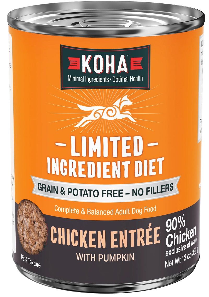 Help your pet thrive with KOHA Limited Ingredient Diet Chicken Entrée for Dogs. With only one animal protein per recipe, Limited Ingredient Diet is the best choice for extreme food sensitivities, digestive issues, or sensitive stomachs. We put no junky fillers such as potatoes, corn, soy or carrageenan that can lead to digestive issues.