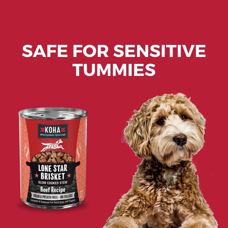 KOHA LONE STAR BRISKET SLOW COOKED STEW BEEF RECIPE DOG FOOD is formulated to meet the nutritional levels established by the AAFCO Dog Food Nutrient Profiles For Growth and Maintenance including growth of large size dogs (70 lbs. or more as an adult). Made in USA.