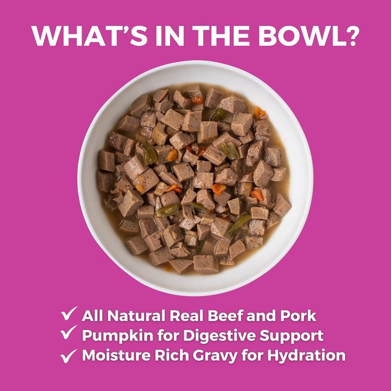 | Ingredients | Beef, Pork Broth, Beef Broth, Beef Liver, Pork, Porcine Plasma, Lentils, Dried Egg Product, Carrots, Guar Gum, Apples, Salmon Oil (preserved with mixed tocopherols), Pumpkin, Salt, Calcium Carbonate, Sunflower Oil, Potassium Chloride, Sodium Phosphate, Taurine, Choline Chloride, Zinc Proteinate, Iron Proteinate, Dicalcium Phosphate, Magnesium Sulfate, Fenugreek Seed, Vitamin E Supplement, Cobalt Proteinate, Copper Proteinate, Manganese Proteinate, Sodium Selenite, Niacin Supplement, d-Calcium Pantothenate, Thiamine Mononitrate, Riboflavin Supplement, Vitamin A Supplement, Vitamin B12 Supplement, Pyridoxine Hydrochloride, Biotin, Potassium Iodide, Vitamin D3 Supplement, Folic Acid. Guaranteed Analysis:Crude Protein (Min.) 8.0% Crude Fat (Min.) 3.0% Crude Fiber (Max.) 1.5% Moisture (Max.) 83.0% Calorie Content: (ME Calculated)808 Kcal/Kg, 291 Kcal/12.7 oz Can |