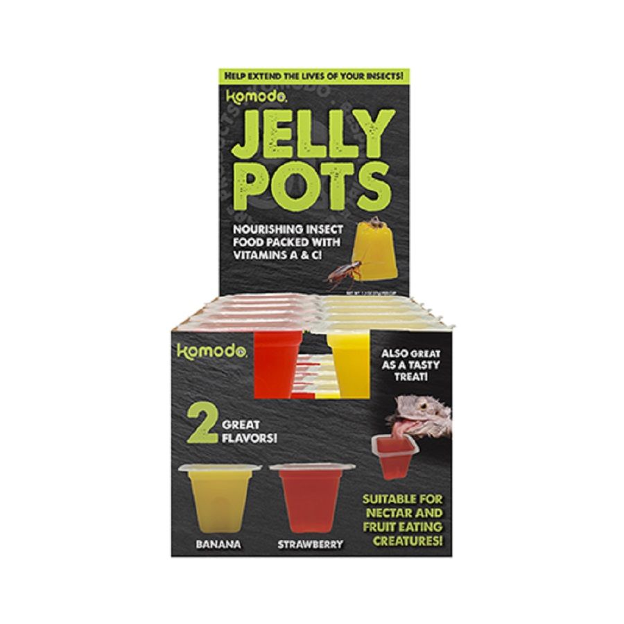 Jelly Pots can also be used as the occasional treat for your fruit loving reptile, and this 20 pack of Jelly Pots is sure to keep them satisfied! The Jelly Pots sold in our 20 pack are 1.3oz per cup, making them more than 2X larger than our 40 count PDQ size! Available in two great flavors: Strawberry and Banana.